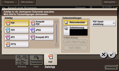 Für die Verwendung von DOCX oder XLSX als Dateityp werden das optionale Upgrade-Kit UK-204 und i-Option LK-110 benötigt.