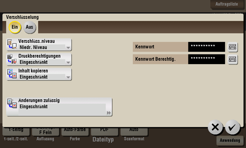 Geben Sie ein Kennwort ein, um den Zugriff auf die Datei zu beschränken. Erstellen Sie eine PDF-Datei, auf die bestimmte Benutzer zugreifen können, denen das Kennwort bekannt ist.