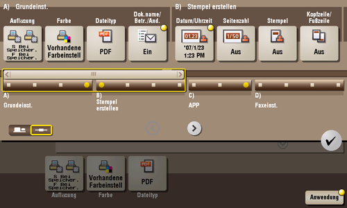 [APP] | Legen Sie Anwendungsoptionen für die E-Mail-Benachrichtigung beim Speichern von Dateidaten oder für die Änderung der Fax-Absenderinformationen usw. fest. |