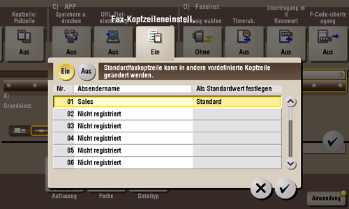 Wenn Sie einen vom Standardnamen abweichenden Absendernamen verwenden möchten, wählen Sie den gewünschten neuen Absendernamen und tippen dann auf [OK].