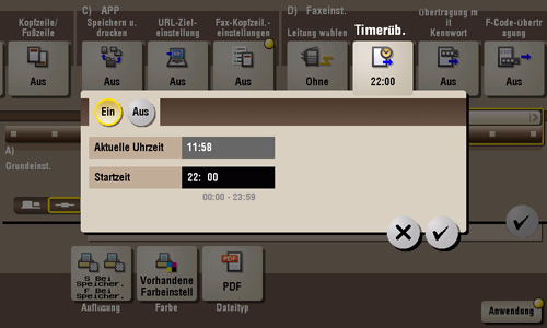 Wählen Sie [Ein], um den zeitgesteuerten Empfang zu aktivieren.