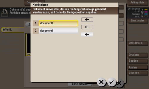 Legen Sie die Druckreihenfolge (Kombination) fest und tippen Sie auf [OK]. Der Optionseinstellungsbildschirm für den Druck wird angezeigt.