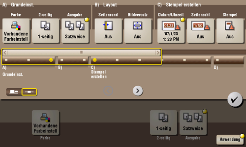 [Stempel erstellen] | Fügt eine Seitenzahl und Stempel zu jedem Blatt hinzu. |
