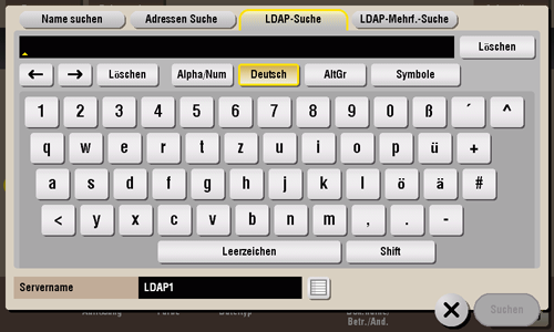 StartseiteBeschreibung der Funktionen / BedienerprogrammtastenLDAP-Suche