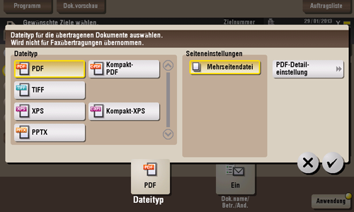 Für die Verwendung von DOCX oder XLSX als Dateityp werden das optionale Upgrade-Kit UK-204 und i-Option LK-110 benötigt.