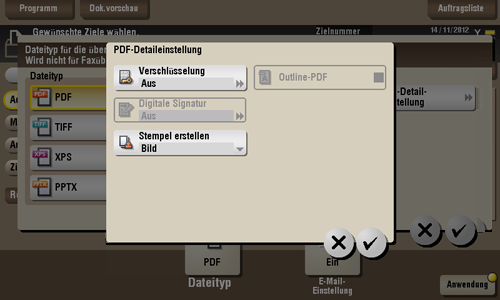 Wenn als Dateityp [PDF] oder [KompaktPDF] ausgewählt ist, können Sie die PDF-Optionen festlegen.