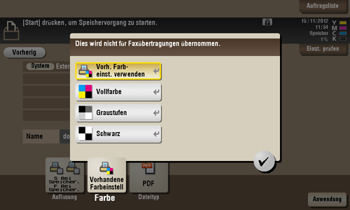 [Vollfarbe] | Sendet eine Datei unabhängig von dem für die Speicherung ausgewählten Modus in Vollfarbe an den externen Speicher. |
