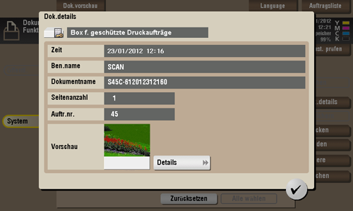 Sie können auf [Details] oder auf ein Miniaturbild tippen, um eine Vorschau des Dateibilds aufzurufen.