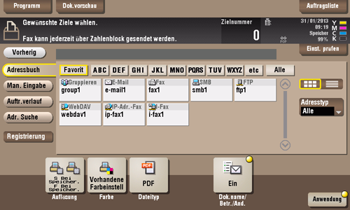 Wählen Sie ein Ziel aus dem Adressbuch aus. Sie können Dateien durch die Auswahl mehrerer Ziele versenden.