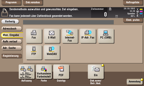 [Internet-Fax] | Geben Sie die Ziel-E-Mail-Adresse ein, an die ein Internet-Fax gesendet werden soll. |