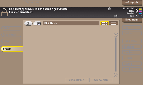 Wenn Sie über den PC ein Dokument in der Systemumgebung für die Benutzerauthentifizierung drucken, werden die Dateien mit der Code- & Druckfunktion übertragen und in der Code- & Druckbox abgelegt. Wenn sich der Benutzer, der die Druckdaten gesendet hat, an diesem System anmeldet und die Benutzerbox öffnet, kann er die gespeicherte Datei anzeigen, ausdrucken oder löschen.