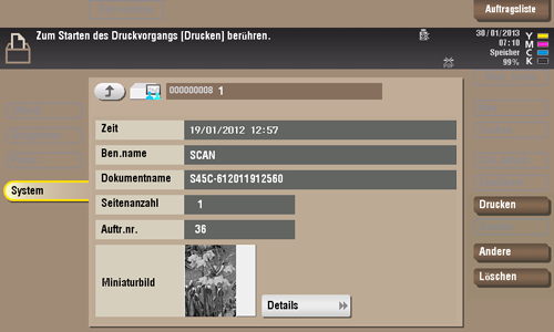Sie können auf [Details] oder auf ein Miniaturbild tippen, um eine Vorschau des Dateibilds aufzurufen.
