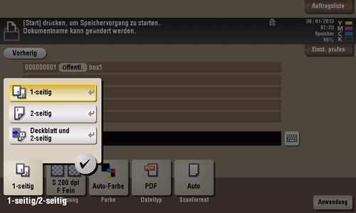 [Deckblatt und 2-seitig] | Scannt eine Seite der ersten Seite des Originals und dann beide Seiten der restlichen Seiten. |