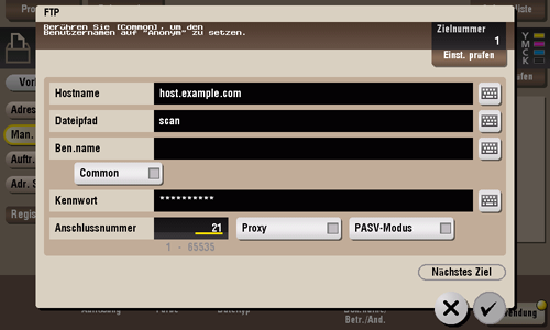 [Common] | Wenn für den Ziel-FTP-Server keine Authentifizierung erforderlich ist, wählen Sie dieses Element. |