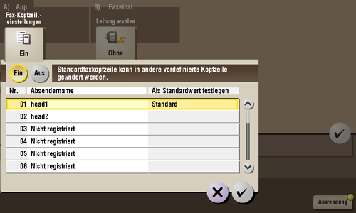 Wenn Sie einen vom Standardnamen abweichenden Absendernamen verwenden möchten, wählen Sie den gewünschten neuen Absendernamen und tippen dann auf [OK].