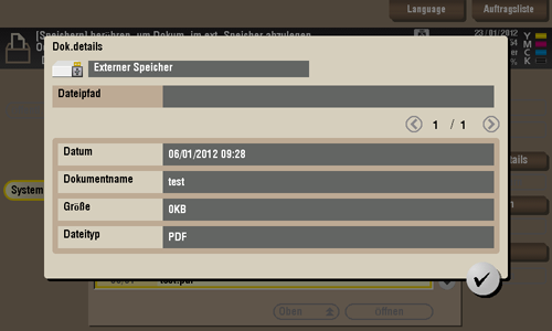 Sie können die Speicherungsinformationen für die ausgewählte Datei abrufen.