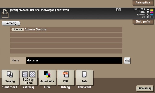 Sie können einen Dateinamen und die Speicheroptionen angeben, wenn Sie die Scandaten eines Originals in einem externen Speicher speichern.
