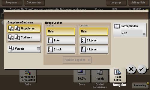 Wählen Sie die Ausgabemethode für den Druck von mehreren Kopiensätzen.