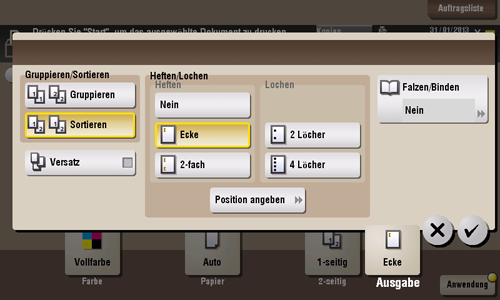 Zur Verwendung der Heftfunktion wird der optionale Finisher benötigt.