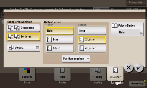 Wählen Sie die Bindungspositionen, wenn die Blätter geheftet werden.