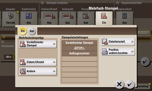 Wählen Sie [Ein] aus, um einen Stempel mehrfach zu drucken.