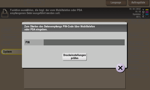 Wenn Sie einen PIN-Code eines Bluetooth-Geräts eingeben, wird eine Datei auf diesem Gerät ausgedruckt.