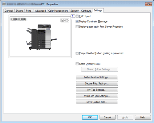 [EMF Spool] | Select this check box when meta file (EMF) spooling is required in your own system environment. |