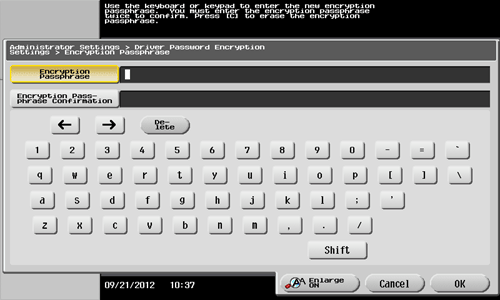 To change the encryption password, you need to set the same encryption passphrase in this machine and in the printer driver.