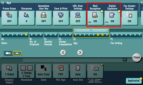 Select [Application] - [App], and configure [Mail Encryption] and [Digital Signature].