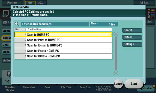 When using a scan transmission from this machine, start the application on a destination computer to import original data, or save original data in a specific folder. For details, refer to Here.