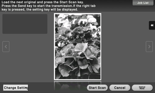After all originals are scanned, tap [Send Now] or press the Start key.