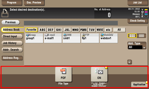 This example uses the Public User Box for explanatory purposes. To use a Personal User Box or a Group User Box, tap [Personal] or [Group] and select the desired box.