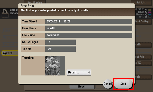 Select a fax, then tap [Proof Print].