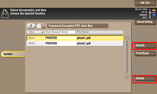 Tap [System] - [Password Encrypted PDF].