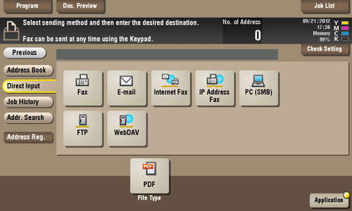 Broadcast transmission is possible by selecting multiple destinations. Broadcasting can also be used for other file transfer functions such as simultaneous E-mail and SMB file transfer.
