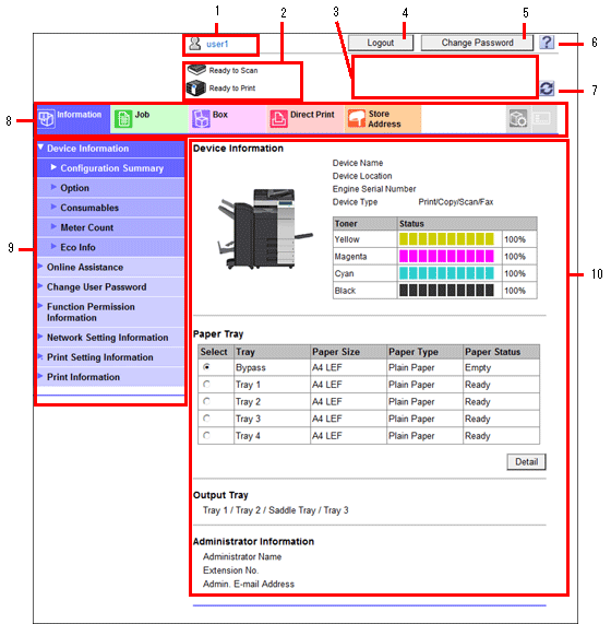 This example shows the items in [Information] - [Device Information] to explain sections in each screen.