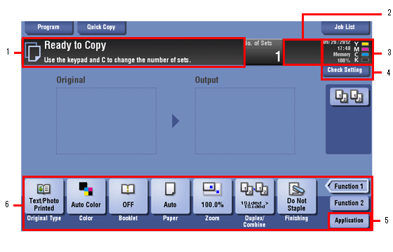The structure of screen is described here as an example of the main screen of copy mode and the screen of applied function.