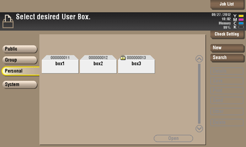 To access a file in this User Box, select the desired User Box, then tap [Open].