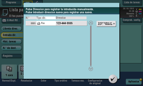 Si es necesario, puede registrar el destino que ha introducido directamente en la libreta de direcciones. Para obtener más información sobre cómo registrar, consulte Aquí.