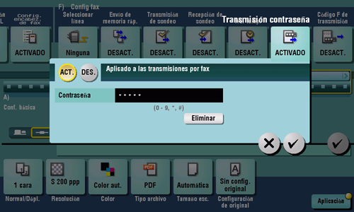 Seleccione [ACT.] para especificar Transmisión contraseña.