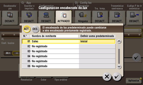 Si desea utilizar un nombre de remitente diferente del predeterminado, seleccione el nuevo nombre de remitente que desea utilizar y, a continuación, toque [Aceptar].