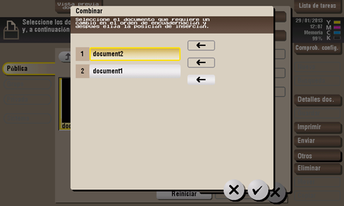 Configure la secuencia de impresión (combinar) y toque [Aceptar]; a continuación, se mostrará la pantalla de ajustes de opciones para impresión.