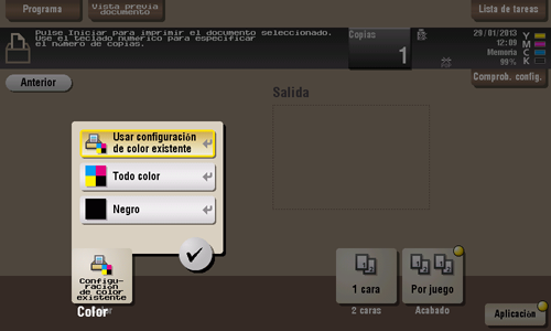 Seleccione un modo de color para imprimir los archivos.