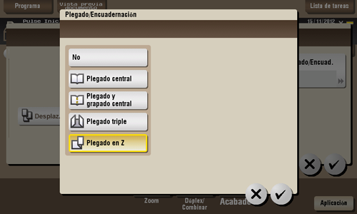 Para utilizar la función de plegado en Z, se requiere la unidad de acabado FS-535 y la unidad de plegado en Z ZU-606 (solo para la ineo+ 554e).