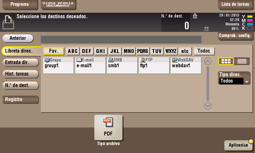 Seleccione un destino de la libreta de direcciones. Es posible retransmitir archivos seleccionando varios destinos.