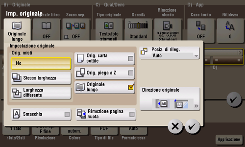 Seleccione esta opción al cargar un original largo cuyo tamaño supere en la dirección de alimentación el tamaño normal completo (11