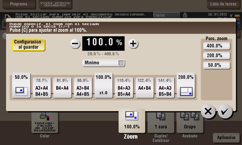 Imprime una imagen del original en el porcentaje de escala que se haya configurado al guardar la imagen.