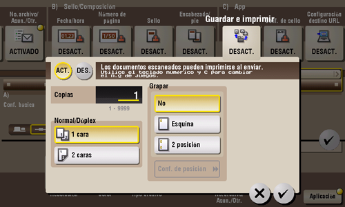 [ACT.]/[DES.] | Seleccione [ACT.] para enviar e imprimir al mismo tiempo. |