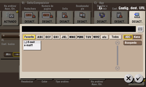 InicioDescripciones de las funciones / teclas utilidadesConfig. dest. URL