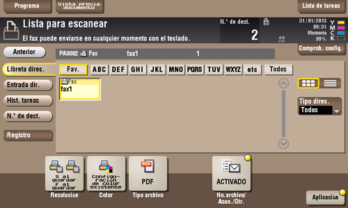 Desde la Libreta de direcciones, seleccione un destino registrado en la máquina. Es posible retransmitir archivos seleccionando varios destinos.